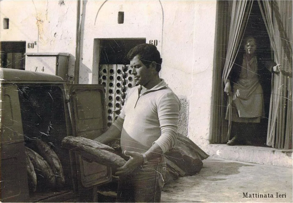 In origine, l’attività del forno, avviata da Leonardo (“u Tenent”) e proseguita dalla figlia Antonia con il marito Tommaso, si limitava, così come accadeva nei tanti paesi di un Sud povero ma dignitoso, alla sola cottura del pane che veniva preparato dalle donne del paese per il fabbisogno settimanale della famiglia. Le tipiche pagnotte, di grandi dimensioni (4-5 kg), venivano quindi raccolte su un carrello trainato da un asino e recapitate presso il forno, dove venivano messe in cottura.